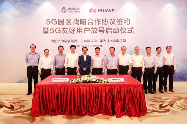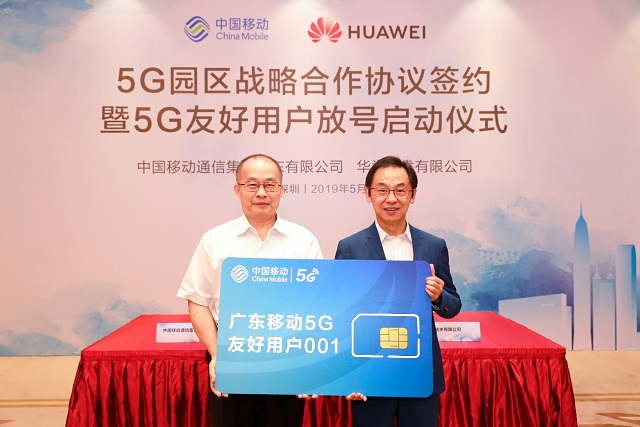 [中国,深圳,2019年5月20日] 5月17日,广东移动与华为强强联手,举行“5G园区战略合作协议签约暨广东首个5G友好用户放号”启动仪式。广东移动总经理魏明、副总经理高志兴、禄杰,华为常务董事丁耘、广东代表处代表周建军等出席。